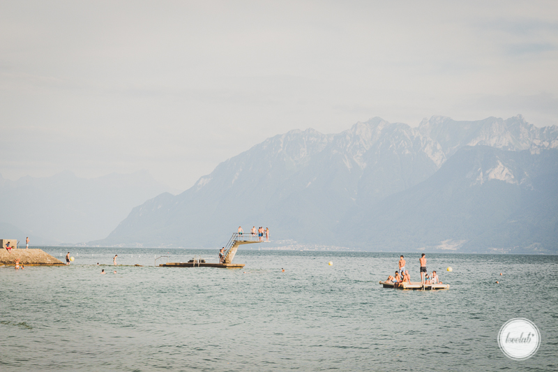 Sábado foi um dia longo. Chegámos e alugámos um carro para irmos ter com a nossa amiga, que vive a 1h da Genéve. Depois do almoço caseiro (que estava maravilhoso e soube tão bem) fomos visitar o Castelo de Chillon e tomámos banho na “prainha” do lago, ao lado do castelo. Ao final da tarde fomos até Montreux (onde, por coincidência, estava a decorrer o conhecido festival de Jazz). A cidade estava cheia de pessoas, mas foi uma perspectiva diferente. Jantámos pizza sentados no relvado e para sobremesa um gelado. Estava muito calor. A B. estava toda contente por ter descoberto um parque infantil e não houve hipótese, teve mesmo de ir brincar nele e fazer amigos Suiços . No verão escurece bastante tarde, diria que até às 21:30 ainda existe alguma luz.